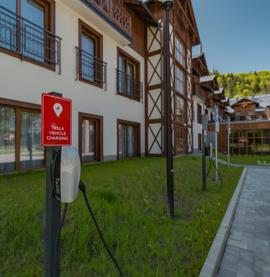 Na naszym parkingu hotelowym Goście mogą skorzystać z dwóch ładowarek elektrycznych dla samochodów. Zachęcamy do ekologicznego podróżowania!