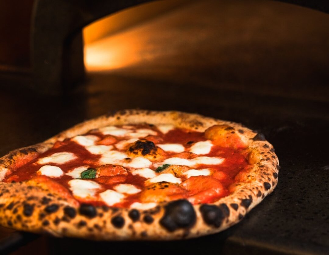 Sos z pomidorów San Marzano D.O.P., Mozzarella di Bufala D.O.P., oliwa extra vergine, świeża bazylia, ser Grana Padano