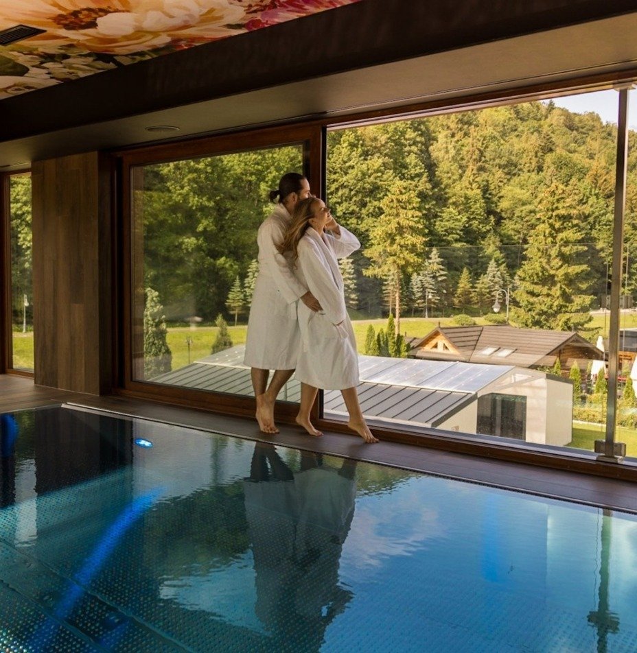 W Szczawnica Park Residence znajduje się klimatyczny basen z przeciwprądami. Basen otoczony jest szklanymi ścianami, dzięki czemu możemy napawać się widokiem na Pieniny i potok Grajcarek, jednocześnie relaksując się w najwyższej jakości wodzie z technologią OSPA.